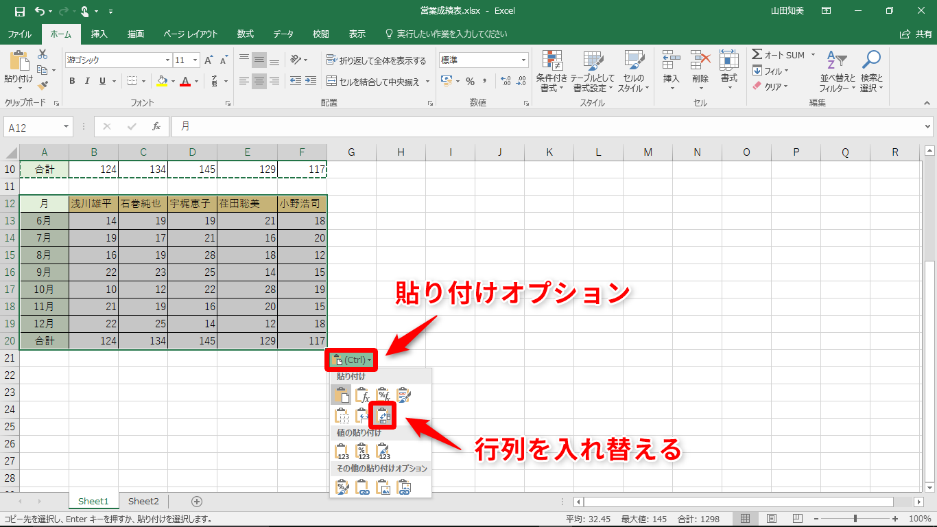 【Excel】縦長の表を横長にしたい!エクセルで表の作成後に行と列を一瞬で入れ替えるテク