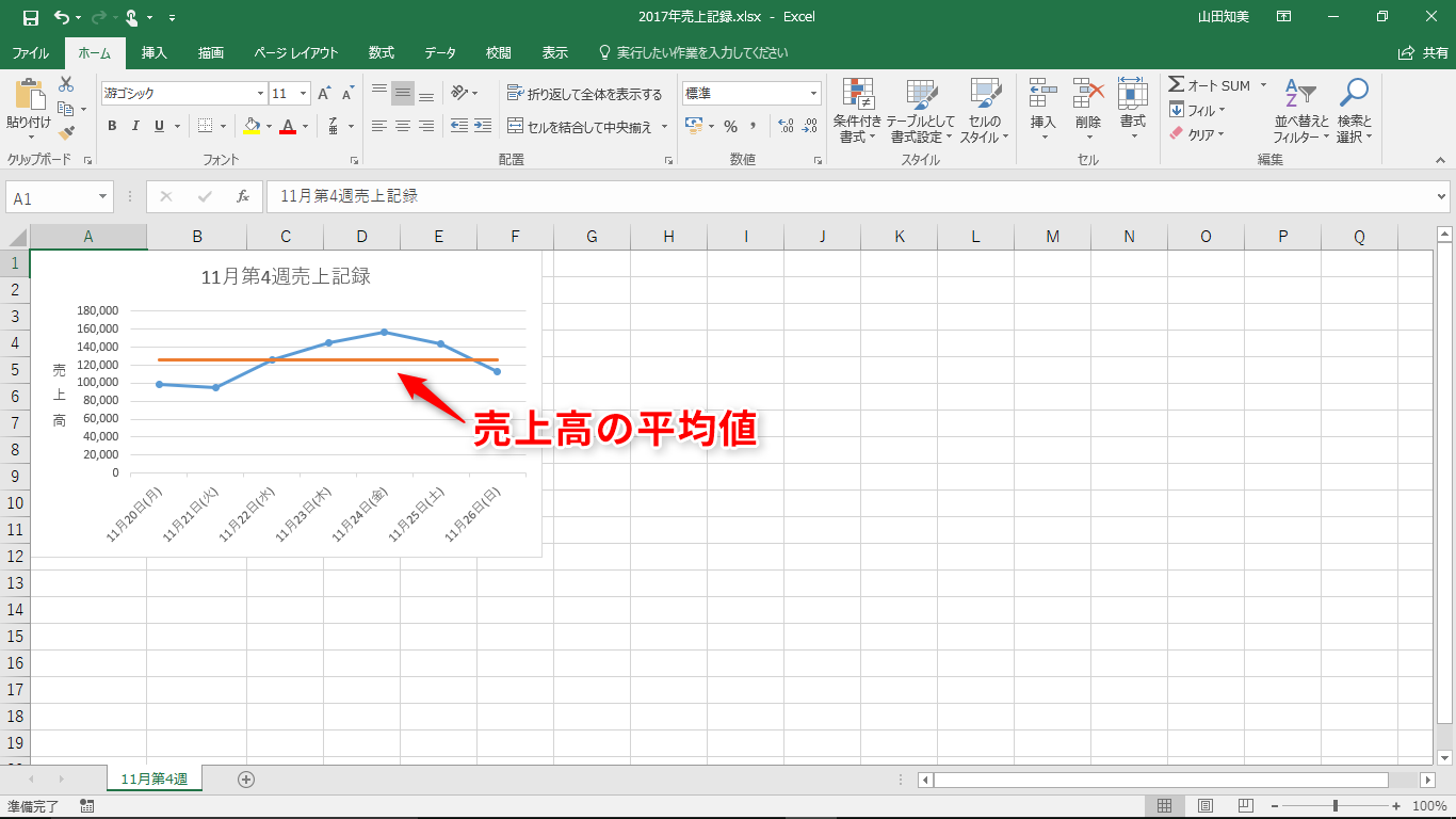 【Excel】日々の売上高を平均と比べたい!エクセルの折れ線グラフに平均値の線を表示するテク