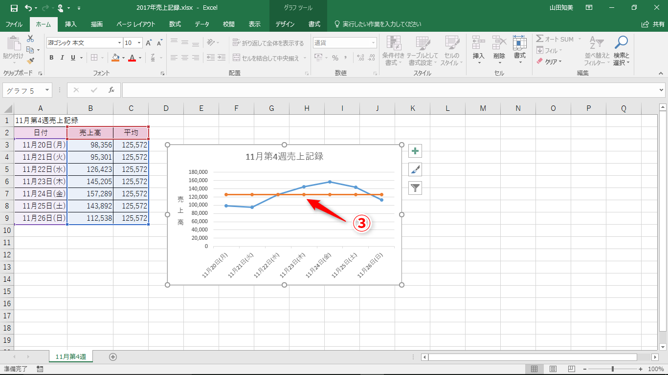 【Excel】日々の売上高を平均と比べたい!エクセルの折れ線グラフに平均値の線を表示するテク
