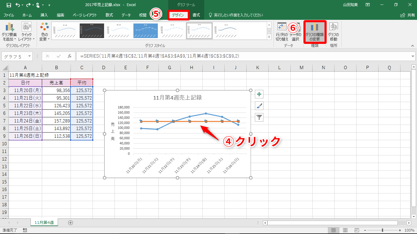 【Excel】日々の売上高を平均と比べたい!エクセルの折れ線グラフに平均値の線を表示するテク