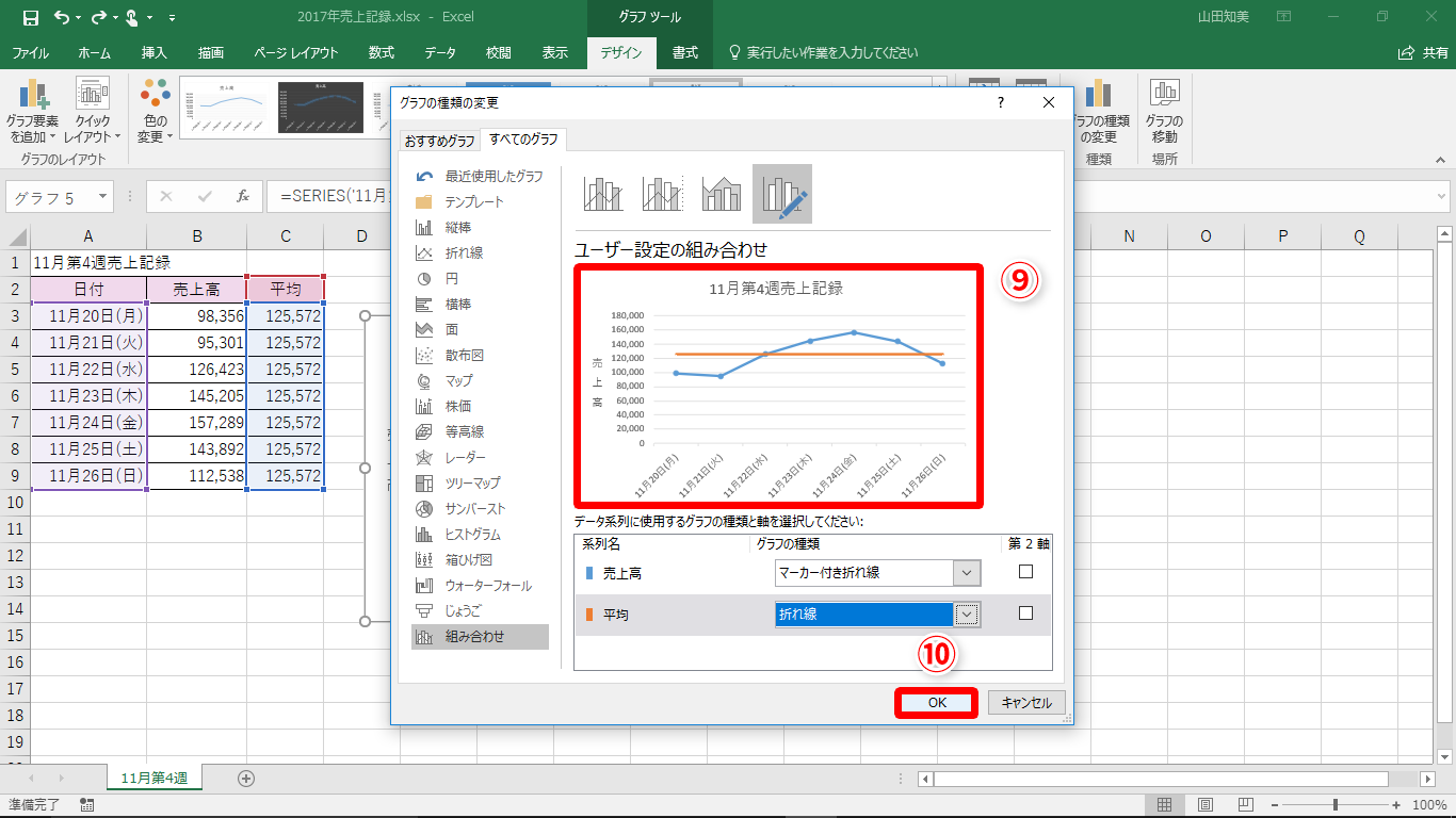 【Excel】日々の売上高を平均と比べたい!エクセルの折れ線グラフに平均値の線を表示するテク