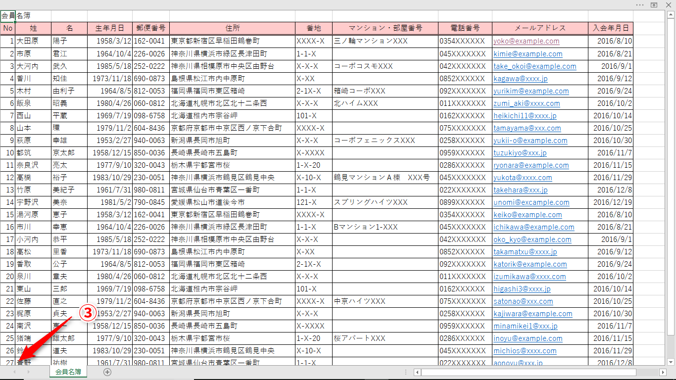 【Excel】データ量が多すぎて見比べたい行が見付からない!エクセルで不要な行や列を一時的に非表示にするテク