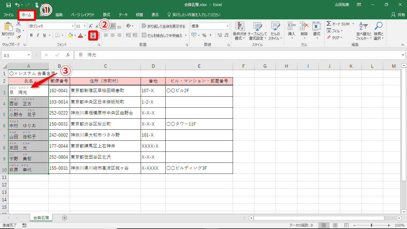 【Excel効率化】名簿作成時に氏名のふりがなを入力し忘れた!エクセルで漢字のふりがなを別セルへ取り出すテク