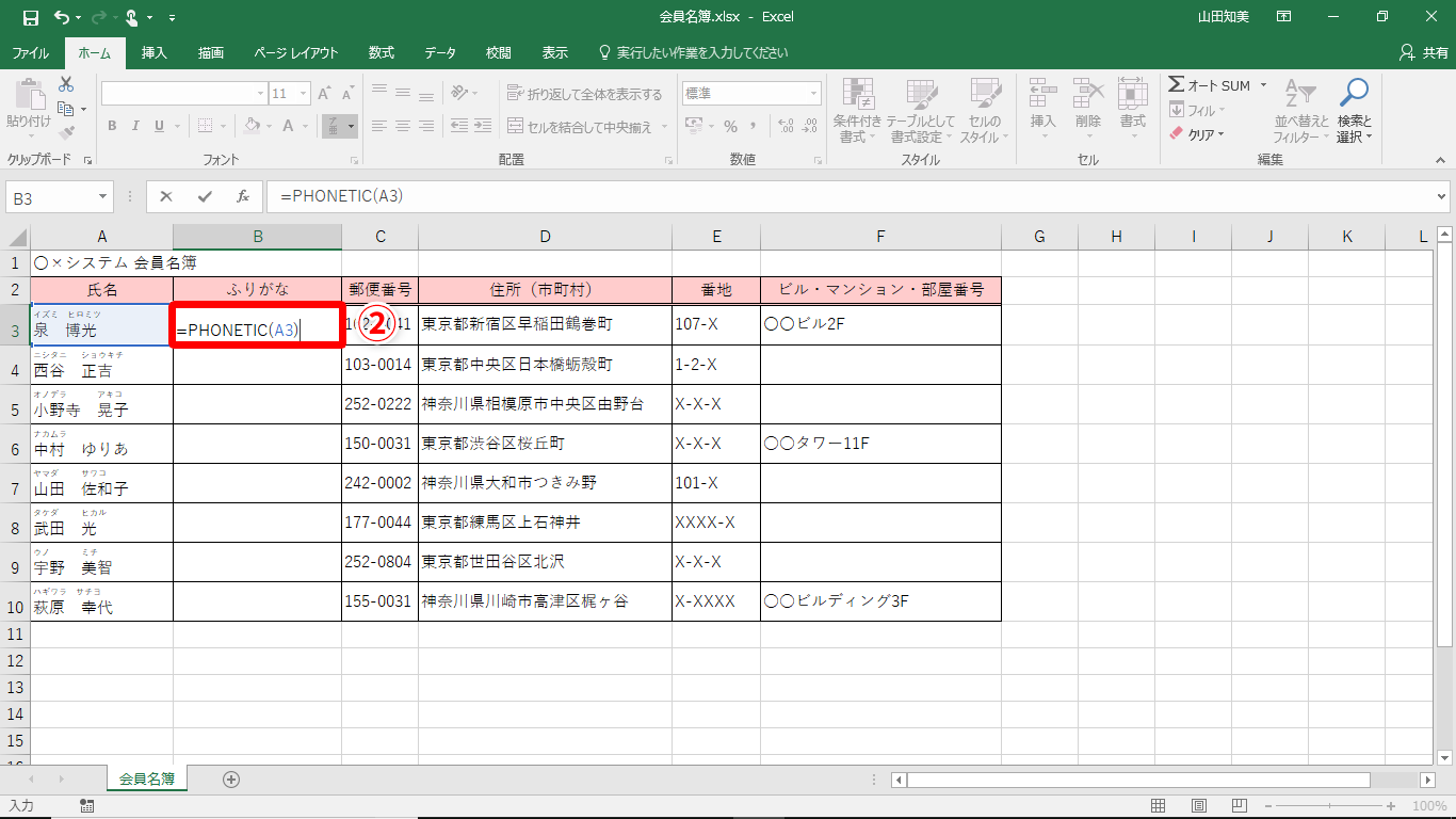 【Excel効率化】名簿作成時に氏名のふりがなを入力し忘れた!エクセルで漢字のふりがなを別セルへ取り出すテク