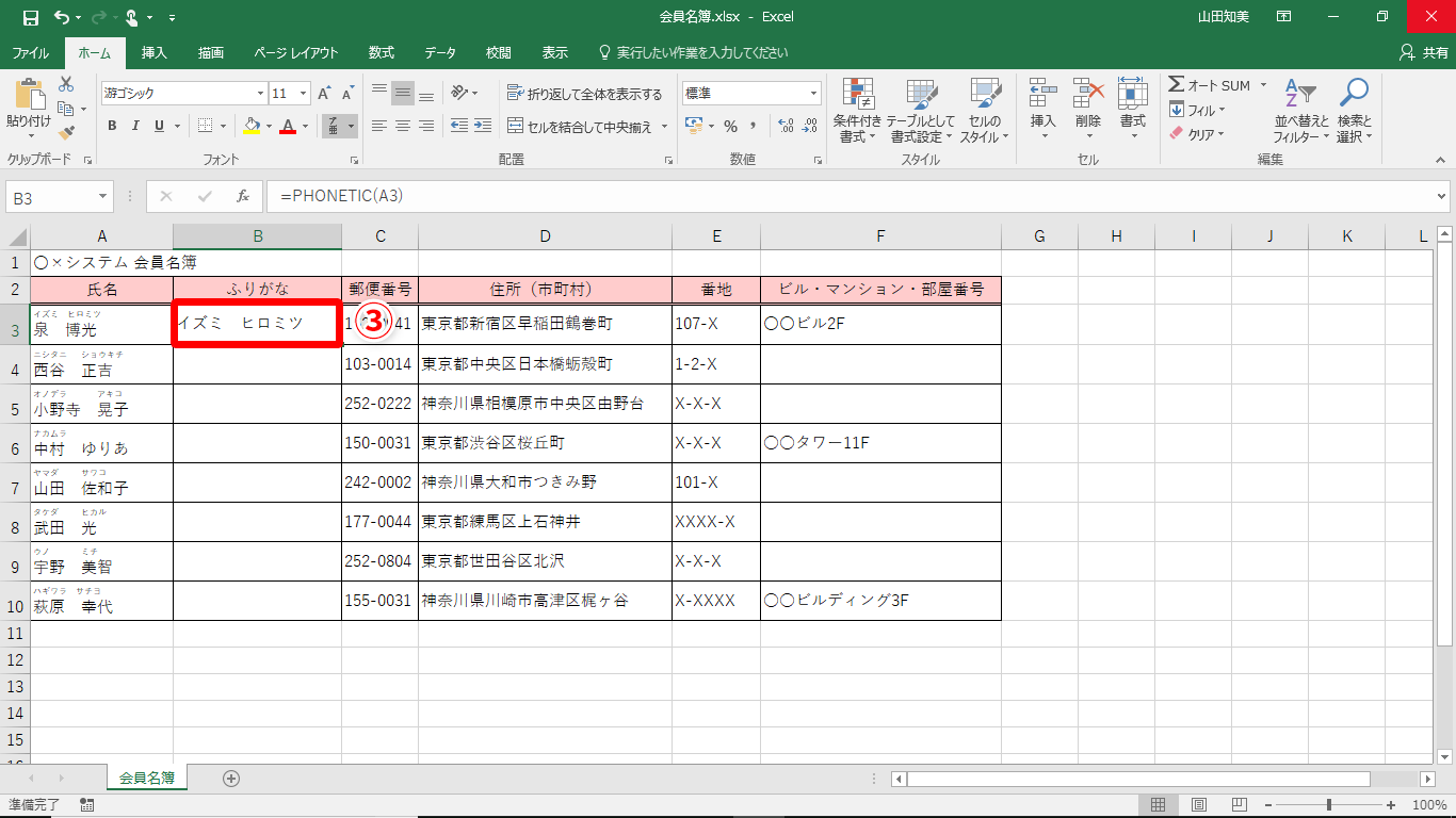 【Excel効率化】名簿作成時に氏名のふりがなを入力し忘れた!エクセルで漢字のふりがなを別セルへ取り出すテク
