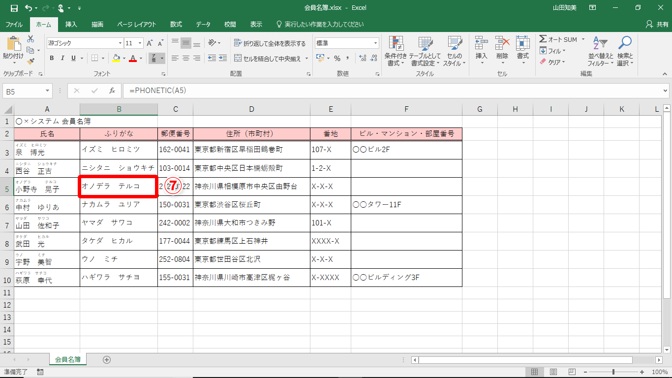 【Excel効率化】名簿作成時に氏名のふりがなを入力し忘れた!エクセルで漢字のふりがなを別セルへ取り出すテク