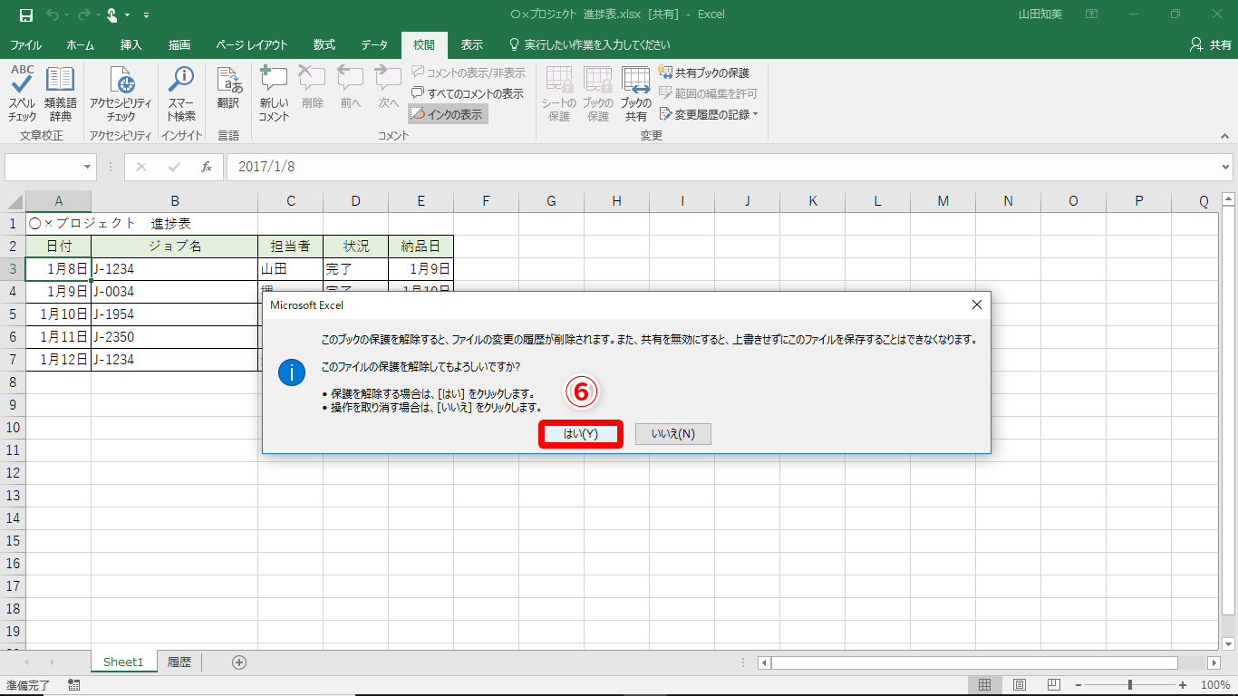 【Excel】共有した進捗表を編集しようとしたらロックされていた!チームのメンバー同士でブックを同時編集するテク