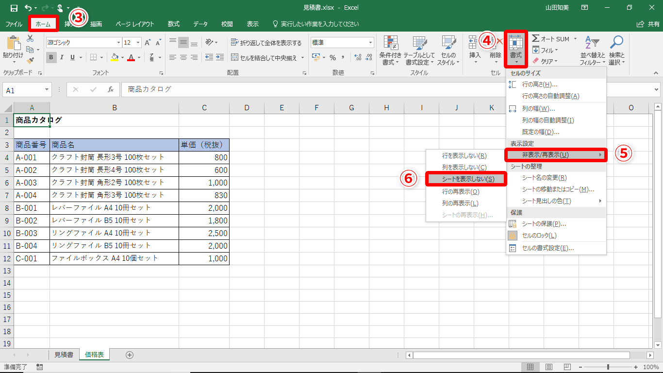 【Excel】見積書の価格表を載せたシートは顧客に見られたくない!エクセルで特定のシートを非表示にしてパスワードをかけるテク