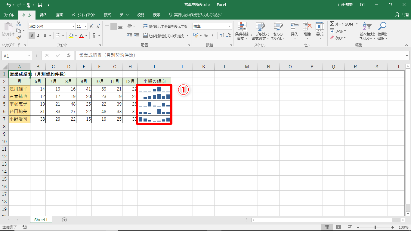 【Excel】シンプルだけど説得力のある資料を作成したい!エクセルのセル内に小さいグラフを表示するテク
