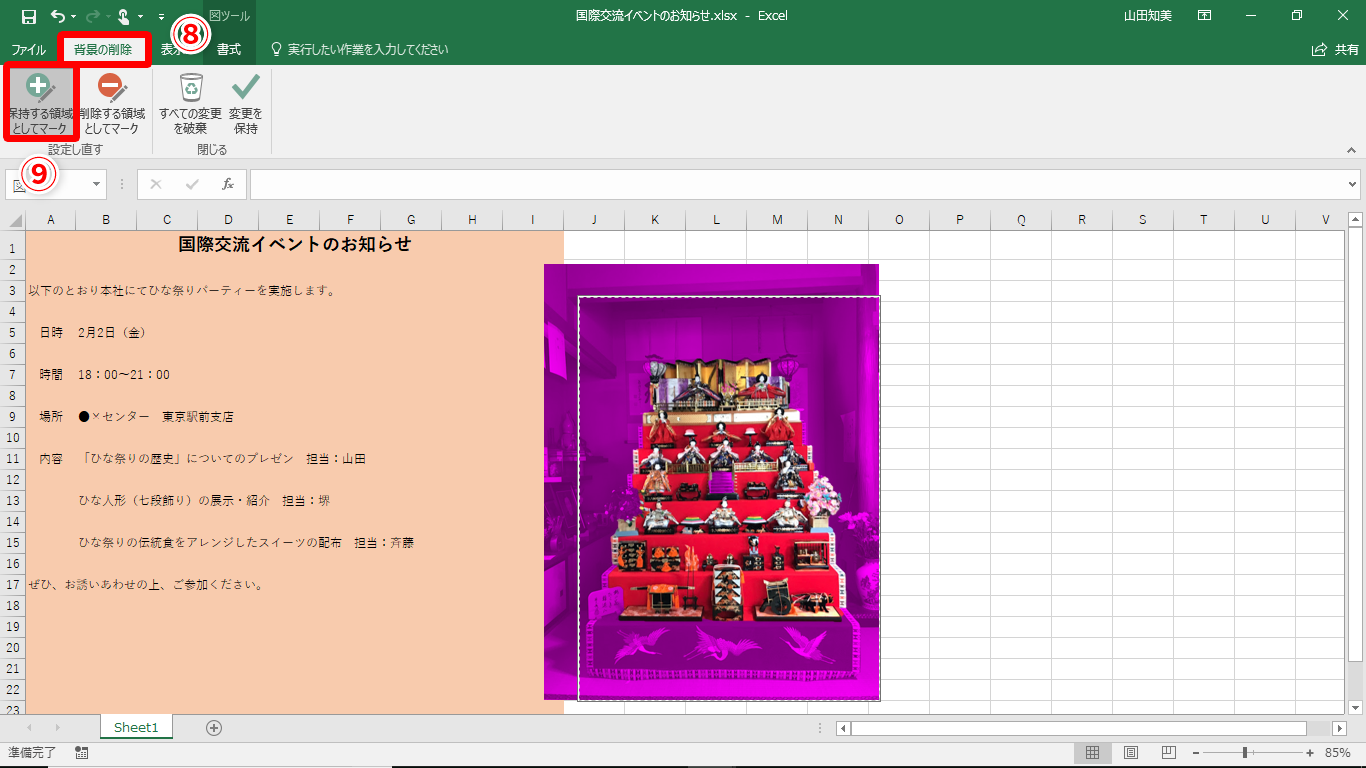 【Excel】シートに挿入した画像の背景を削除・透明化したい!エクセルで画像入り案内状や操作手順書の作成を効率化するテク