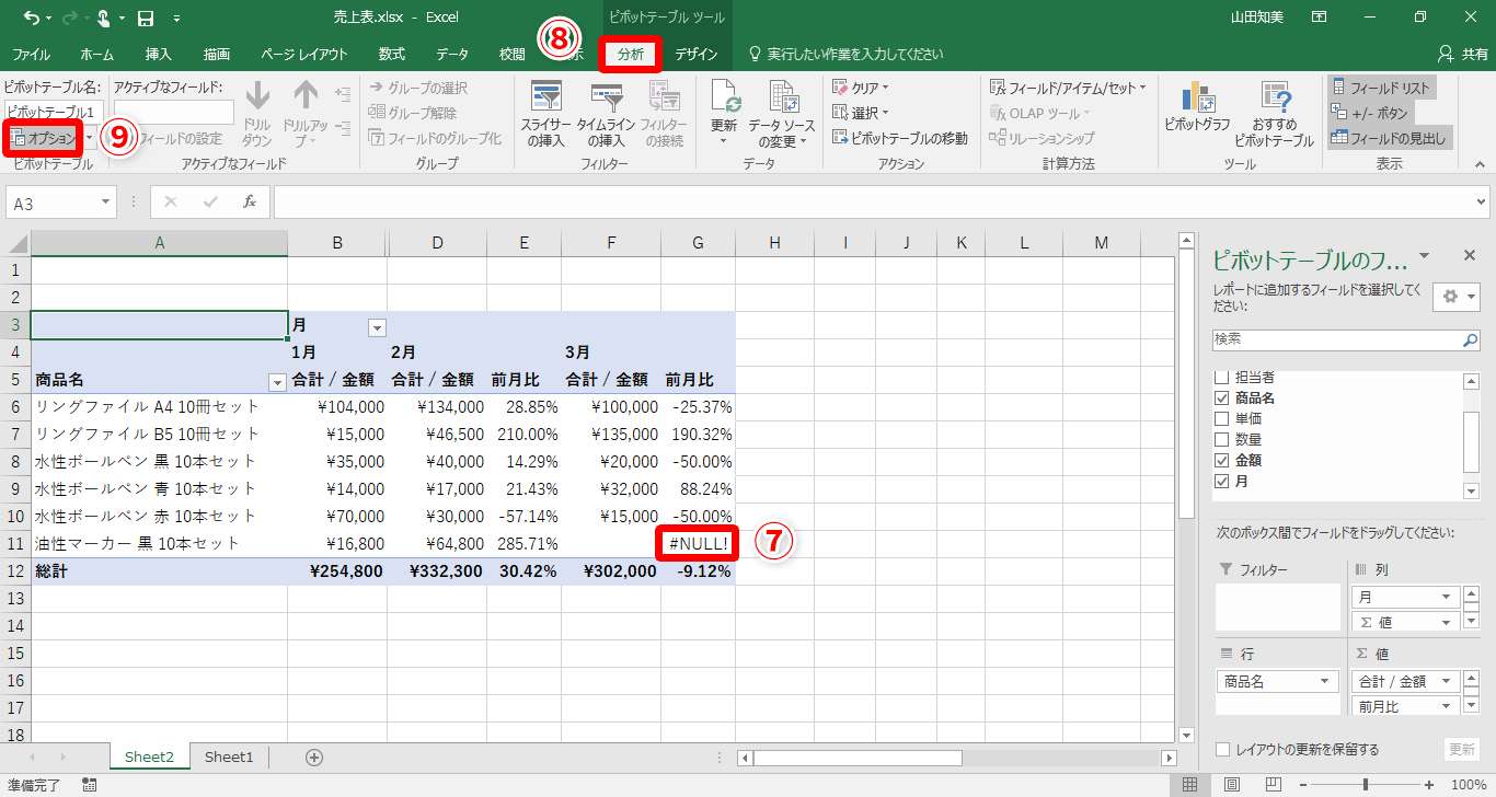 【Excel】ピボットテーブルで効率よく売上の前月比を計算!簡単なクリック操作だけでエクセルのデータを分析するテク(11/14)
