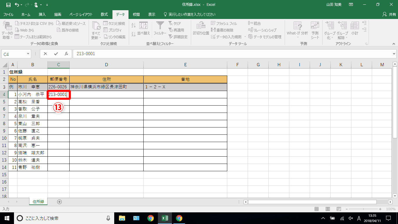 【Excel】名簿の「郵便番号」欄に全角と半角が混在して管理が面倒!特定のセル範囲には半角で入力してらえるように促す方法