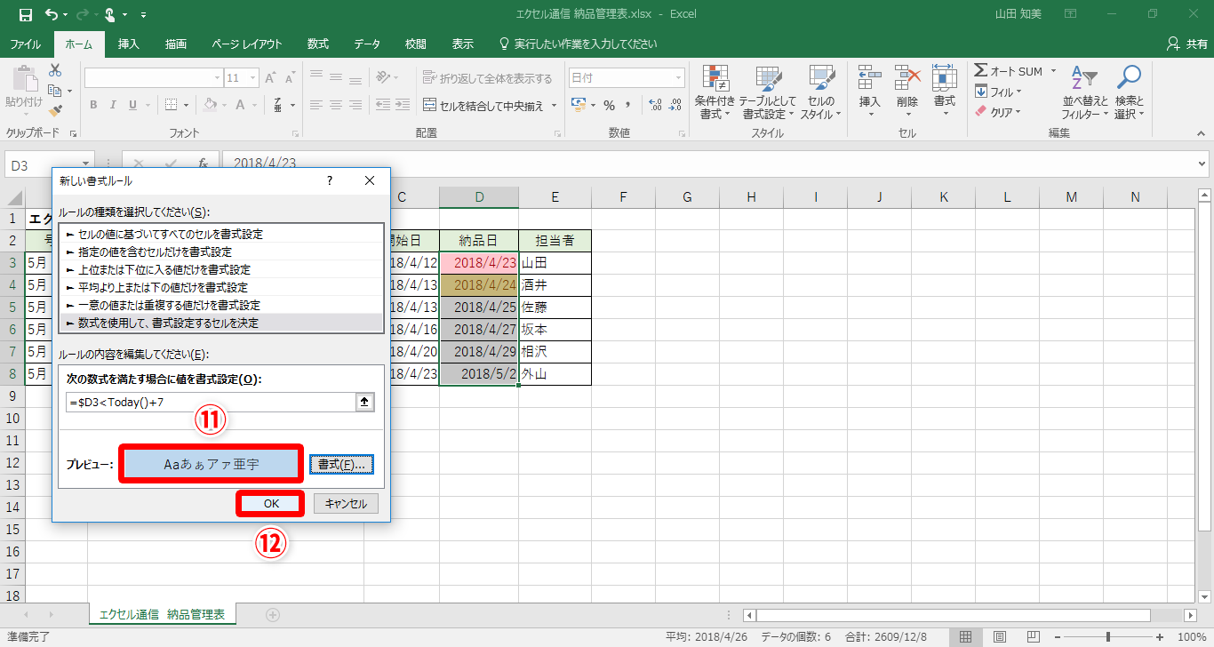 【Excel】納期が近づいてきたらエクセルが教えてくれるって本当?!納品日を絶対に忘れたくない人のための納品管理テク(13/19)