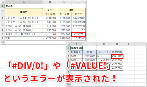 【Excel】セルに「#DIV/0!」や「#VALUE!」と表示された!エクセルで数式は正しいはずなのにエラーが出る理由と対処法
