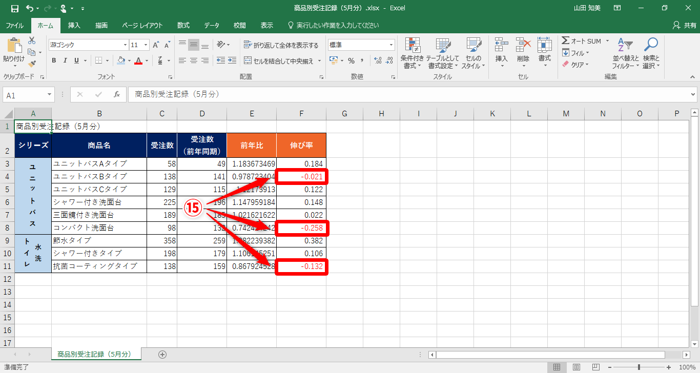 【Excel】受注数が減ったら自動で強調して目立たせたい!エクセルでマイナスの数値に色や記号を付けるテクニック