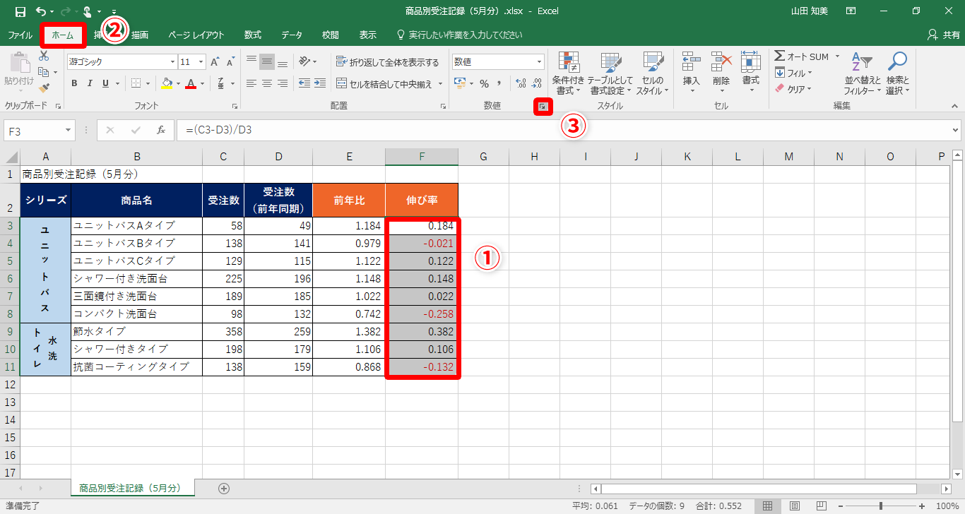 【Excel】受注数が減ったら自動で強調して目立たせたい!エクセルでマイナスの数値に色や記号を付けるテクニック
