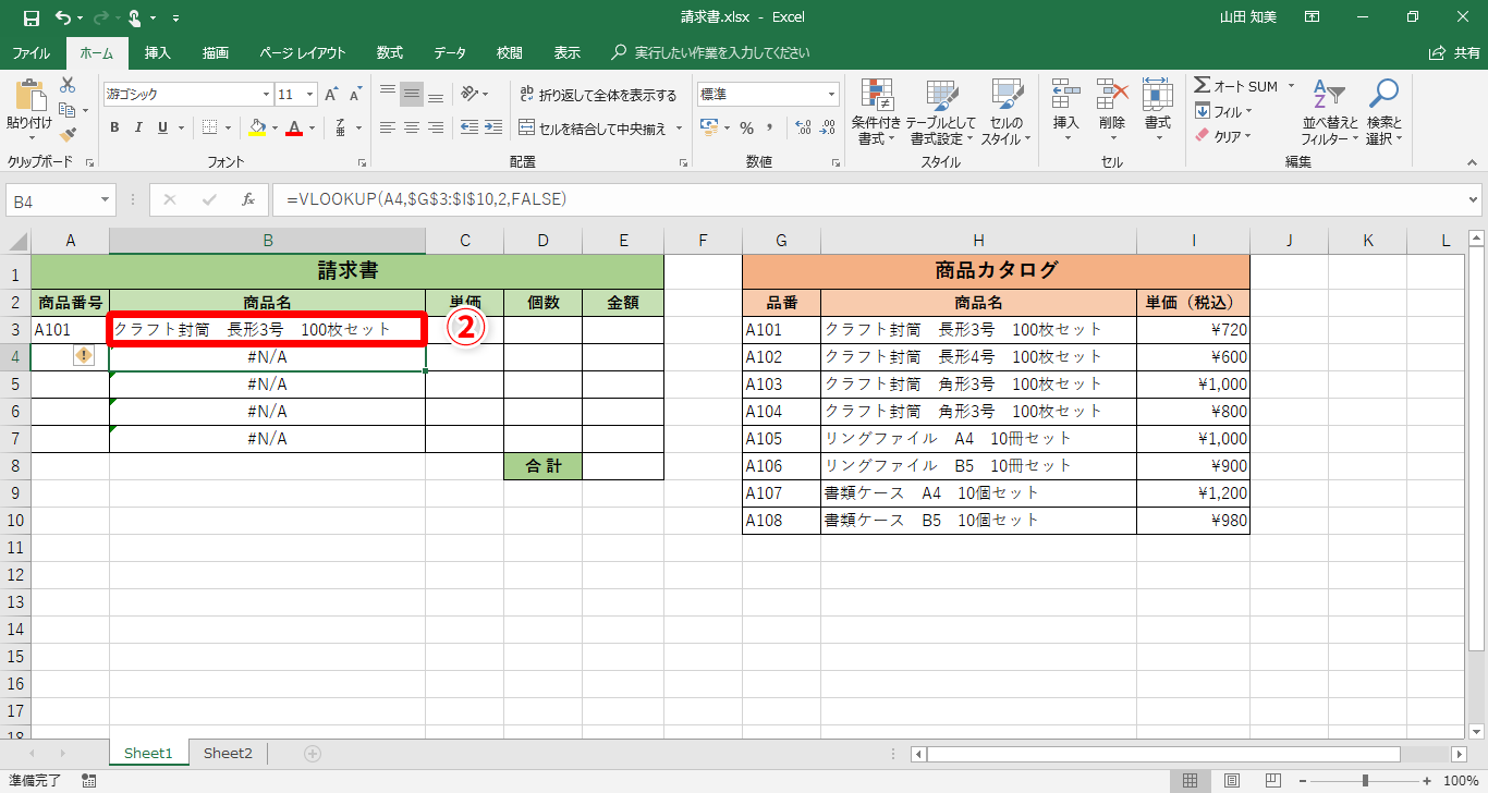 【Excel】「#N/A」エラーは意図通りなので非表示にしたい!データ入力の頼れる相棒VLOOKUP関数を使いこなすためのエラー処理2選