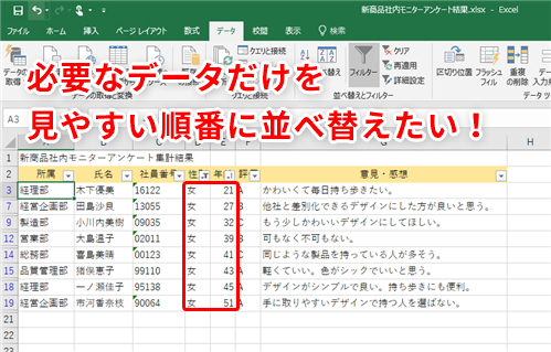 【Excel】アンケート結果から年齢別・部署別の回答傾向を把握したい!エクセルの表で効率よく必要なデータを表示するテク