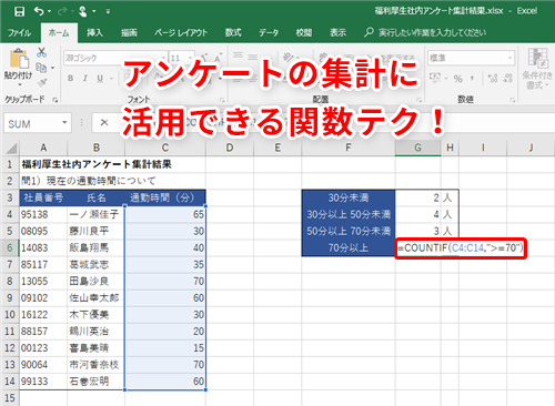 【Excel】アンケート結果をすばやく集計したい!エクセルで条件を満たすデータをカウントするテク