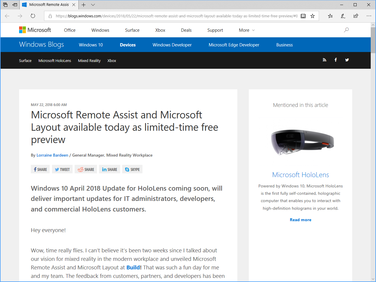 Microsoft、HoloLens向けに2つのアプリを無償プレビュー ~April 2018 Updateの配信も予告