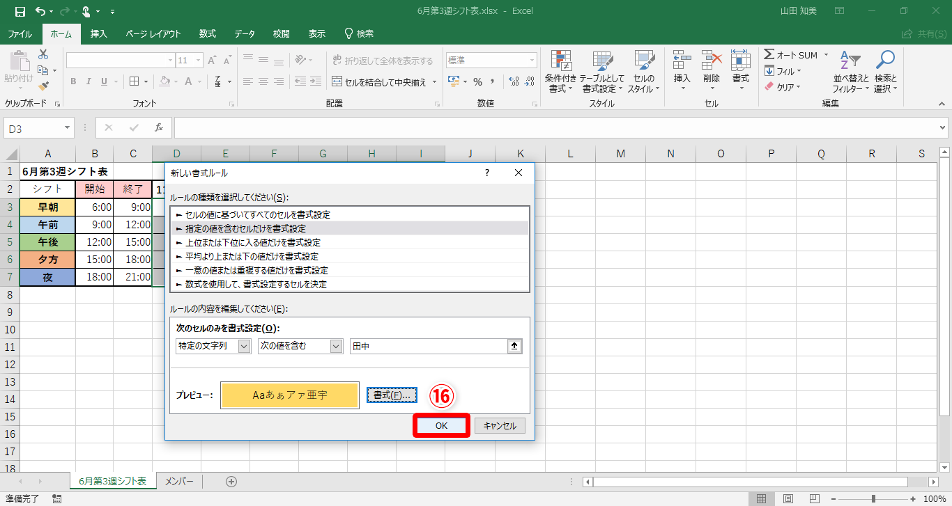 【Excel】シフト表から名前を選ぶだけで自動色分け!エクセルのドロップダウンリストでセルの色を変えるテクニック
