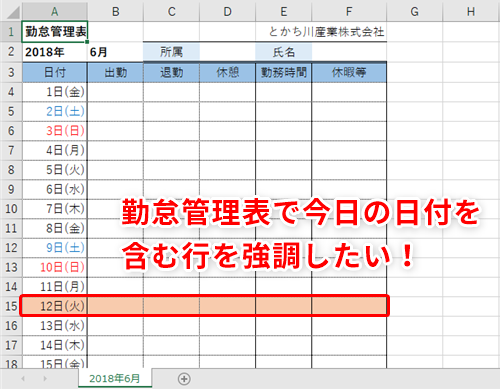 【Excel】勤怠管理表で今日の日付が見付からない!エクセルで今日の日付を自動で強調表示するテクニック