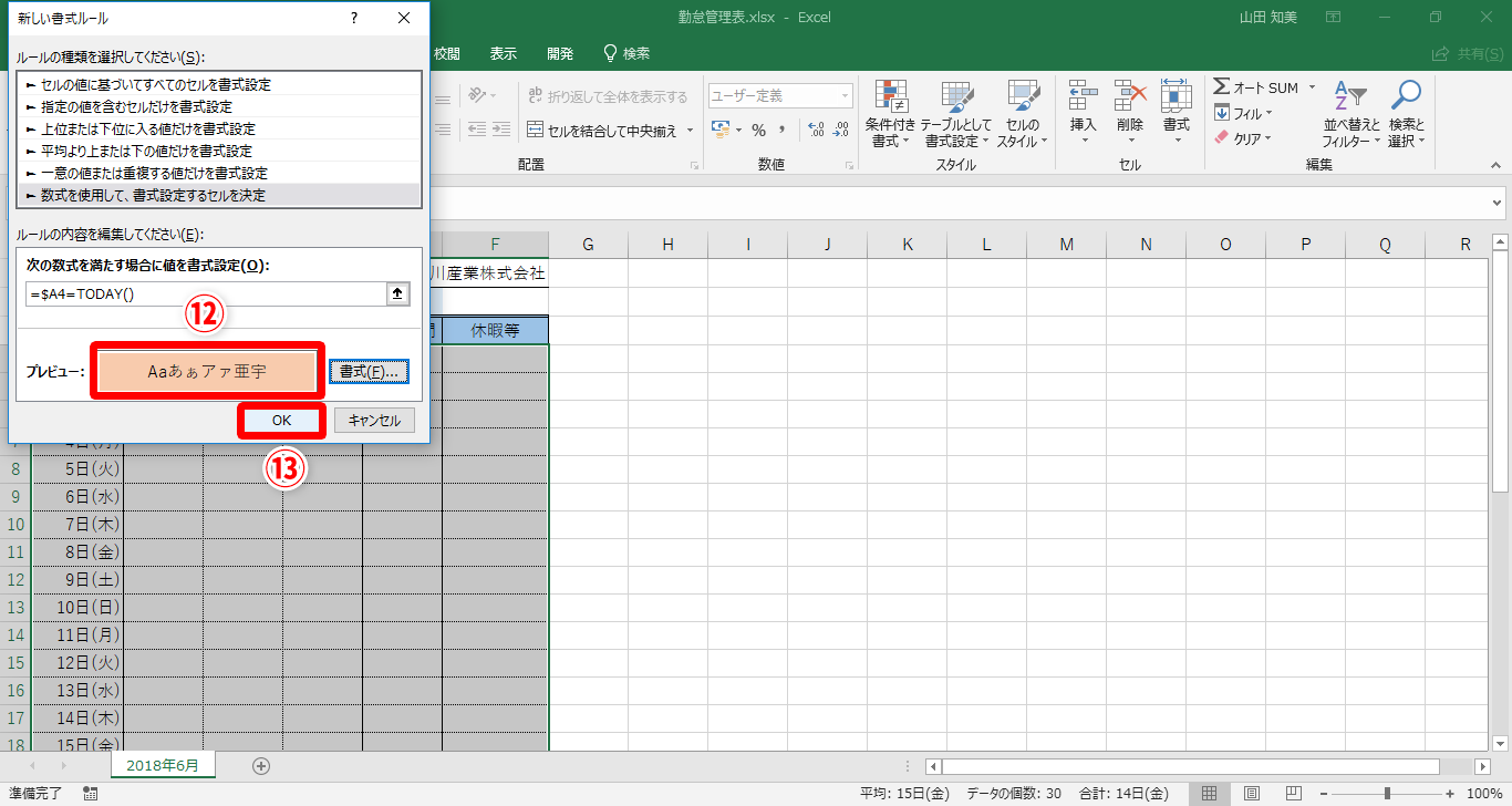 【Excel】勤怠管理表で今日の日付が見付からない!エクセルで今日の日付を自動で強調表示するテクニック