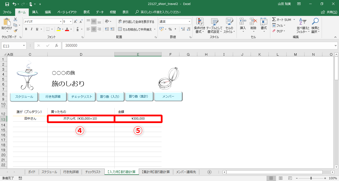 【Excel】グループ旅行費の割り勘が面倒!エクセルで立替金の精算などの複雑な処理を簡単に済ませる方法