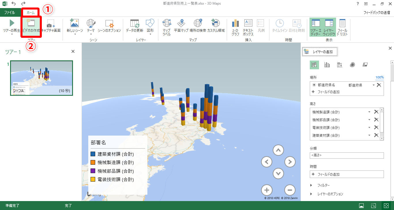 【Excel】グラフを動画化してプレゼンのインパクトUP! 地図上にグラフを表示した3Dマップを動画で見せるテク