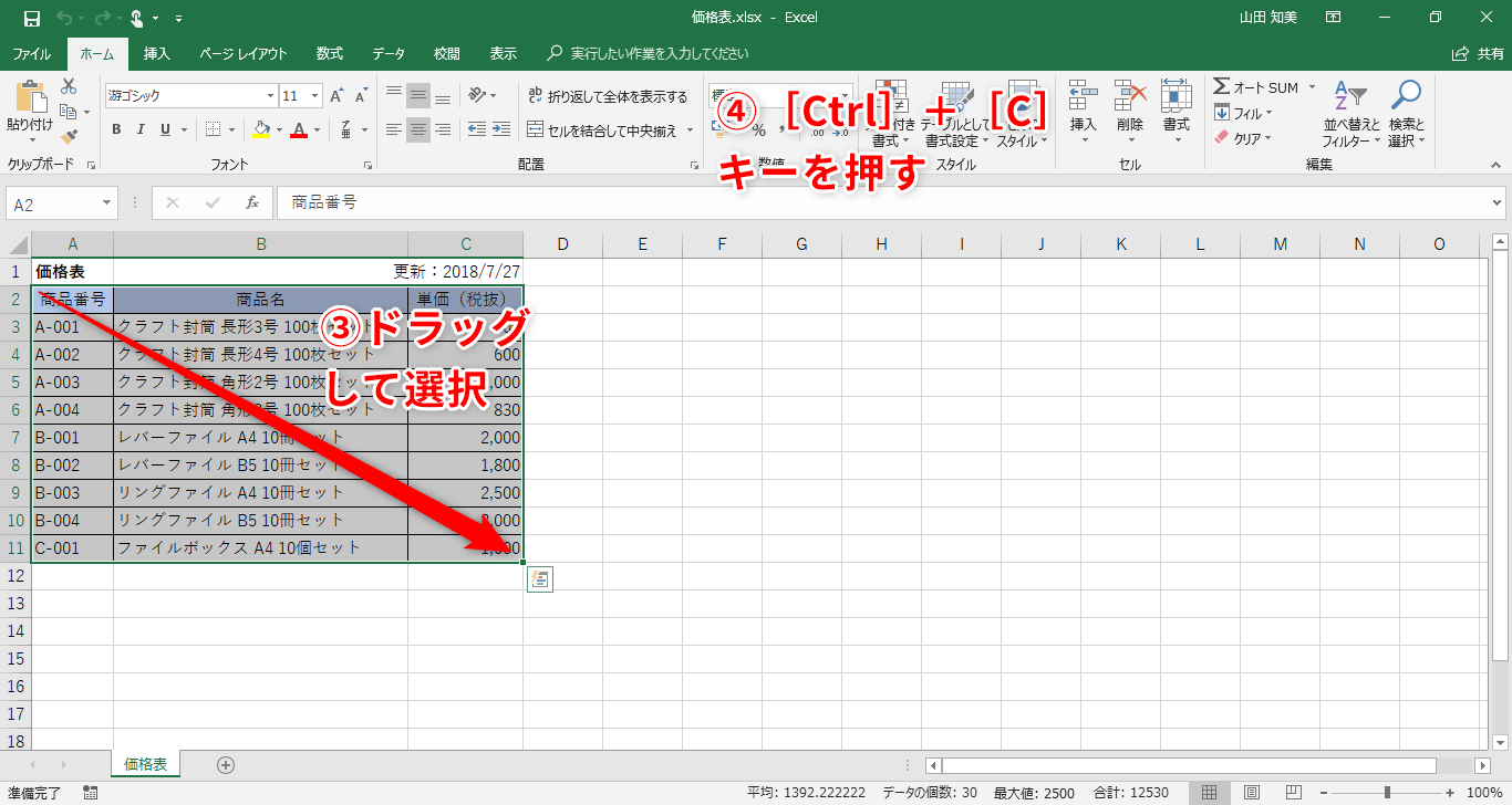 【Excel】価格改定を一度の修正で複数の表に反映したい!エクセルでコピー元を修正すると貼り付け先も更新されるようにするテク