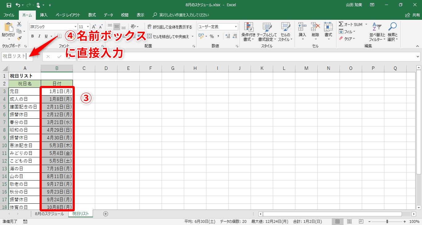 【Excel】スケジュール表で祝日がわかるようにしたい!エクセルで土日だけでなく、祝日の日付にも色を付けるテク