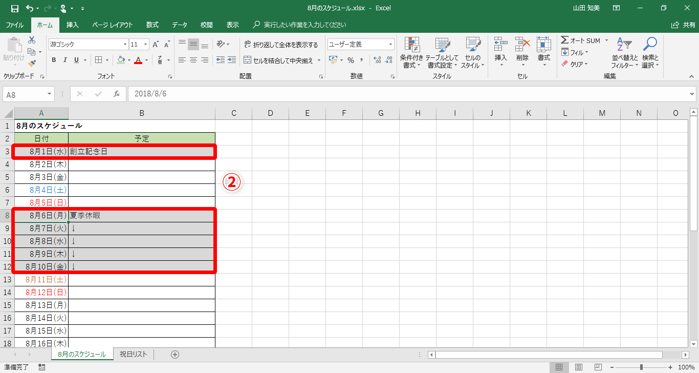 【Excel】スケジュール表で祝日がわかるようにしたい!エクセルで土日だけでなく、祝日の日付にも色を付けるテク
