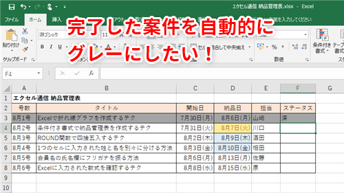【Excel】納品表で納品済みの案件を自動で塗りつぶしたい!エクセルで特定データが入力されると背景が自動変更されるようにするテク