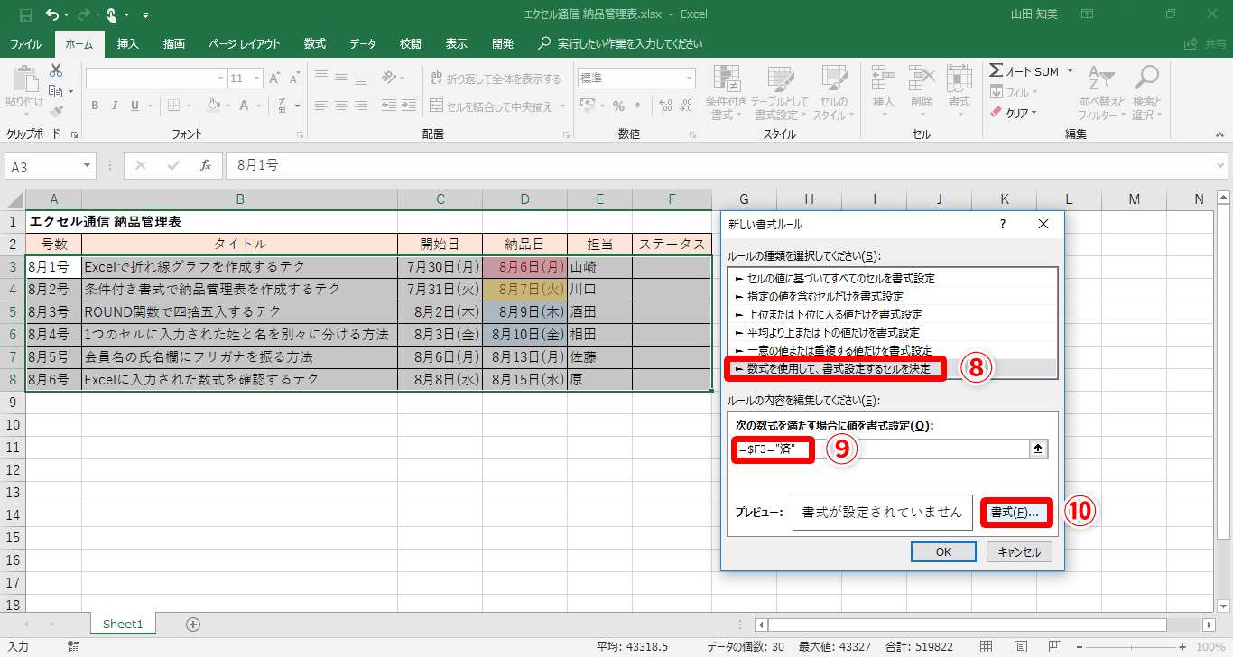 【Excel】納品表で納品済みの案件を自動で塗りつぶしたい!エクセルで特定データが入力されると背景が自動変更されるようにするテク