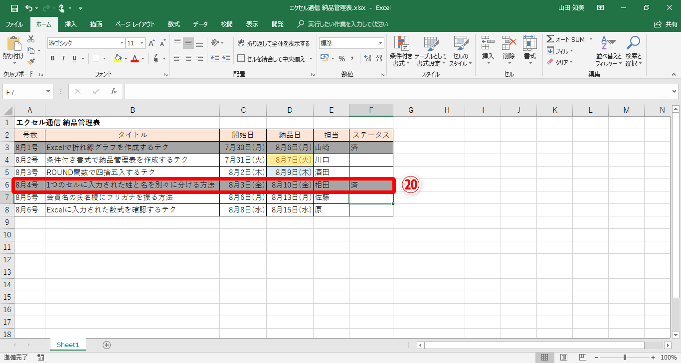 【Excel】納品表で納品済みの案件を自動で塗りつぶしたい!エクセルで特定データが入力されると背景が自動変更されるようにするテク