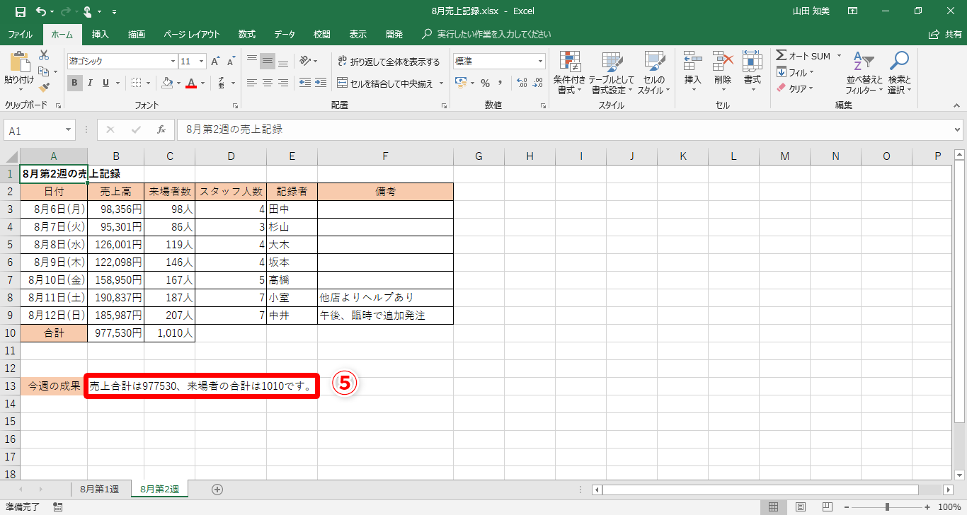 【Excel】表の中にある数値を使った総括の文章を表示したい!エクセルでテキストの中に入れ込むために数値を適切な文字列に変換するテク