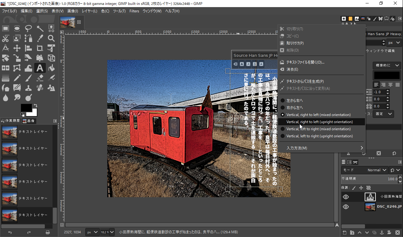 無償の画像編集ツール「GIMP」が縦書きテキスト描画に対応(2/5)