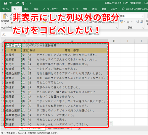【Excel】アンケート集計結果をコピペしたら隠しておいた個人情報が見えるように!エクセルで表の見える部分だけをコピーするテクニック