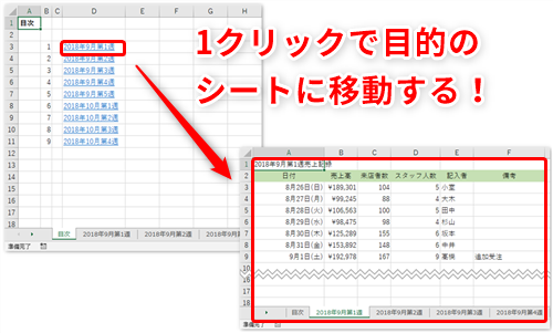 【Excel効率化】シートが多すぎて目的のデータを探せない!エクセルで見たいシートへすばやくジャンプできる目次を作成するテク