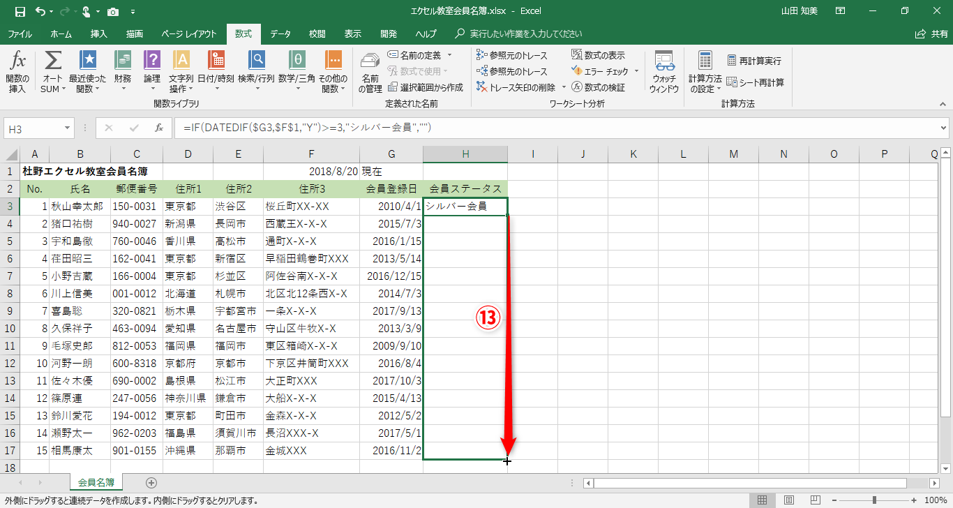 【Excel】入会年数に応じた会員ランク付けを自動化!知らなきゃ損するエクセルのDATEDIF関数活用テク(6/9)