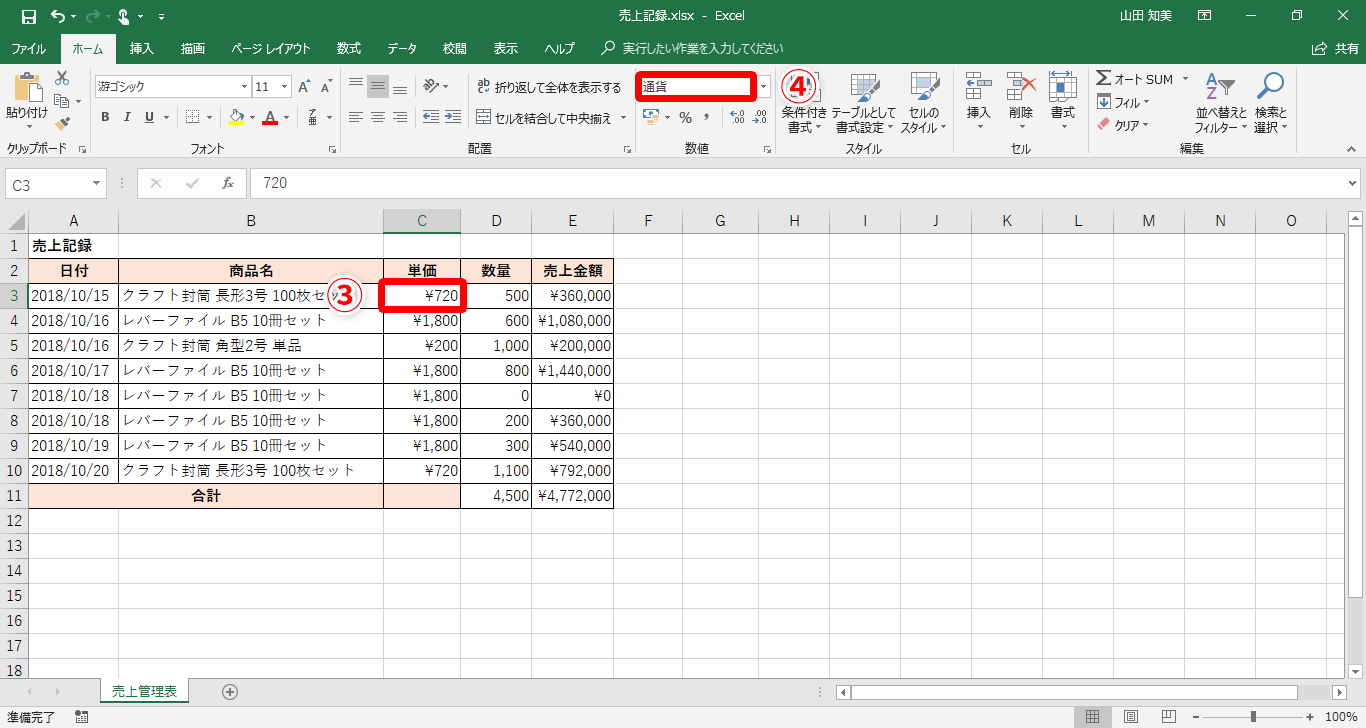 【Excel】「¥」マークや桁区切りの「,」が消せない!エクセルで数値の書式を解除する方法