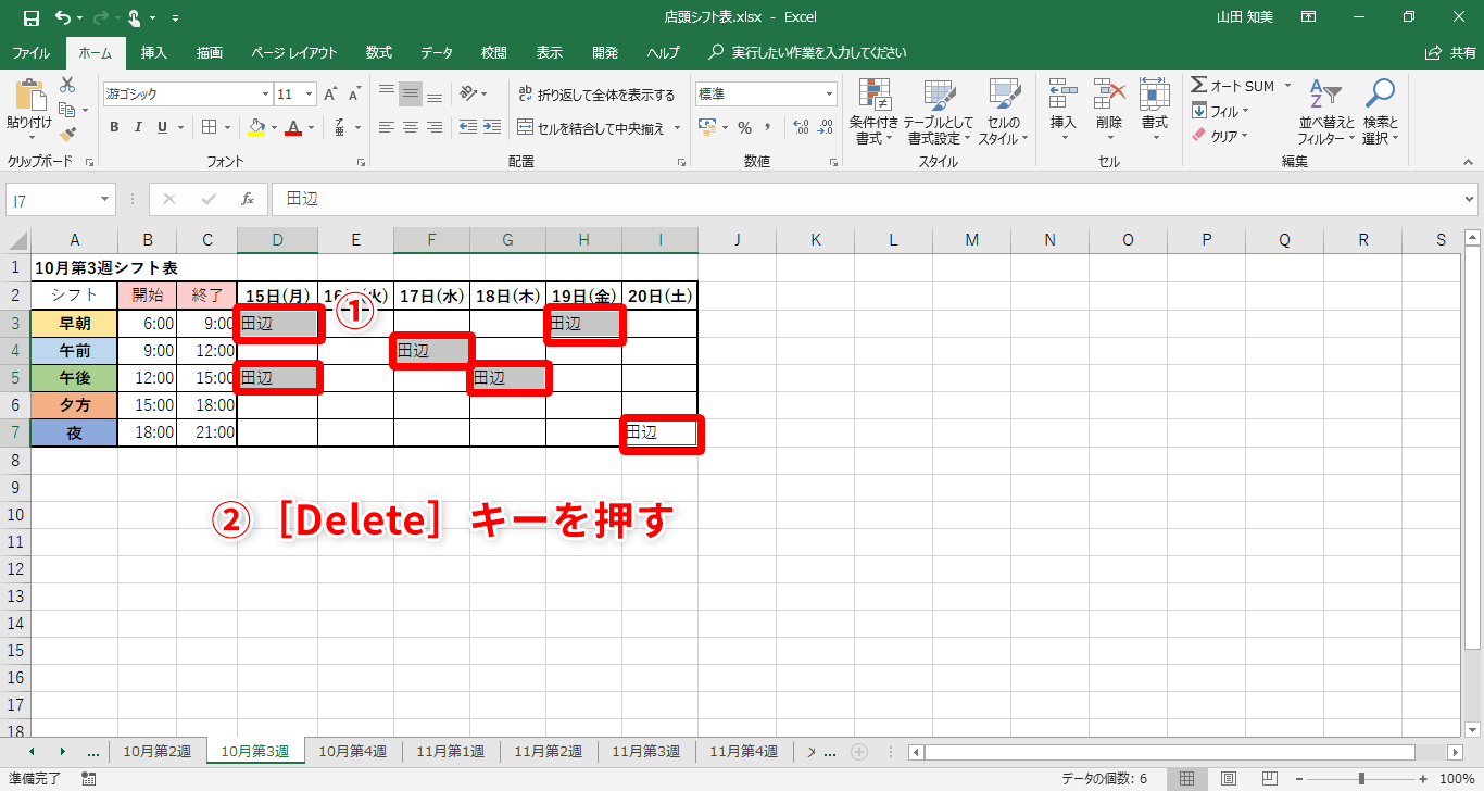 【Excel】シフト表に担当者の名前を一気に入力したい!エクセルで複数のセルに同じデータを一瞬で入力できるテクニック