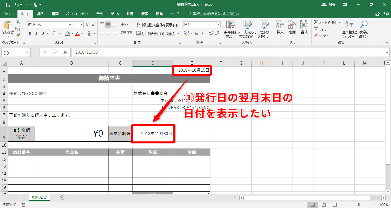 【Excel】請求書に翌月末の日付を自動入力したい!エクセルで請求書発行日から支払期限日を自動設定するテク