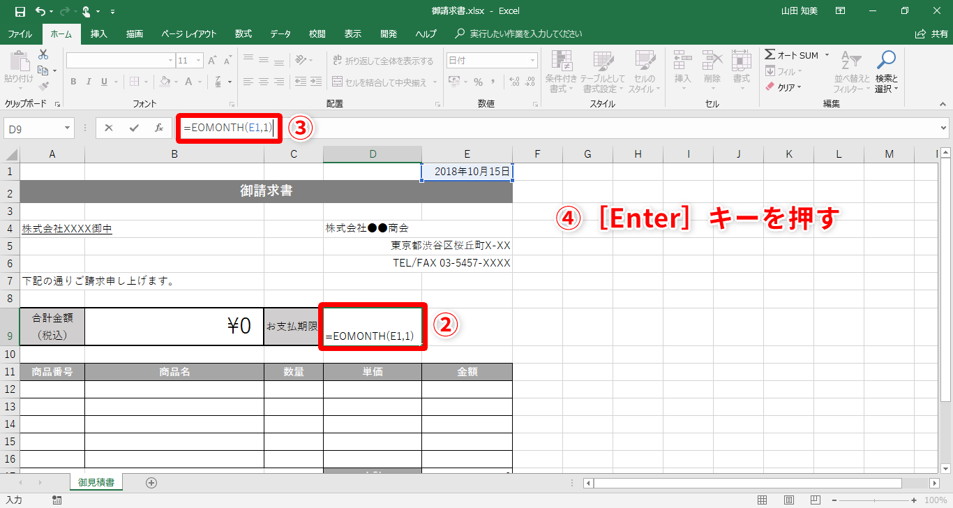 【Excel】請求書に翌月末の日付を自動入力したい!エクセルで請求書発行日から支払期限日を自動設定するテク