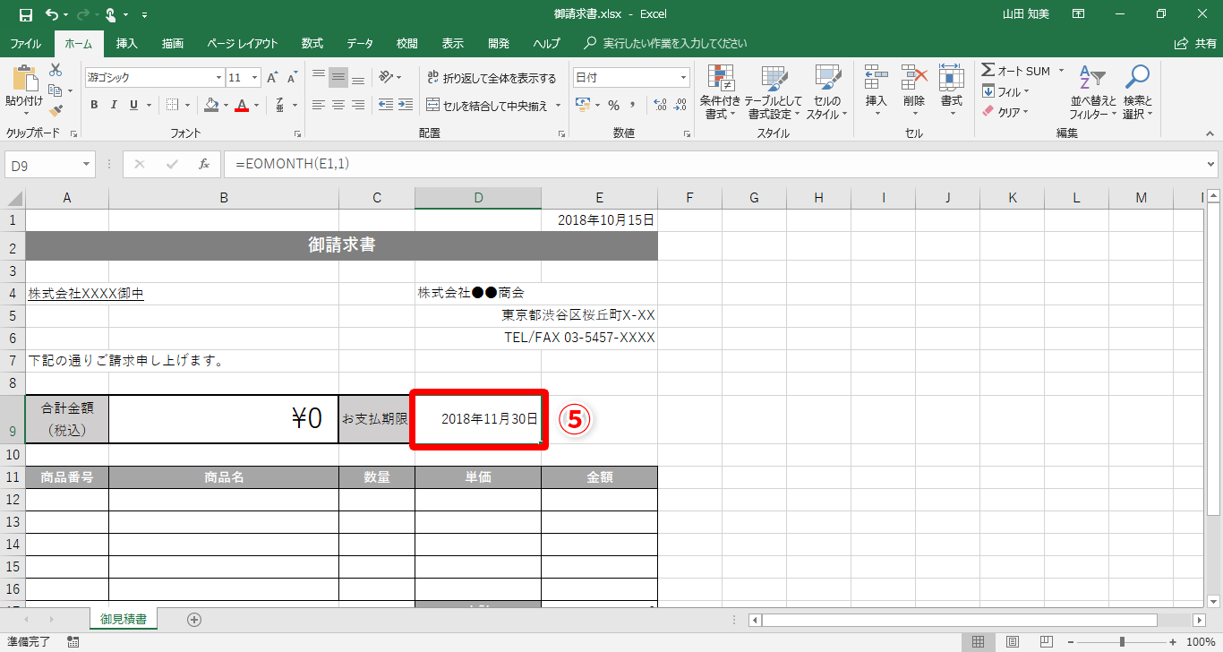 【Excel】請求書に翌月末の日付を自動入力したい!エクセルで請求書発行日から支払期限日を自動設定するテク