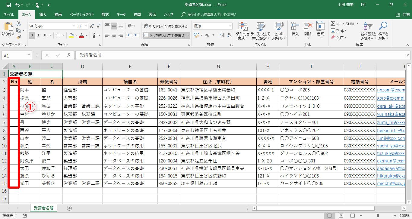 【Excel】行を削除するたびに名簿の連番を振り直すのは面倒!エクセルで行を追加・削除すると自動更新される連番を作るテク