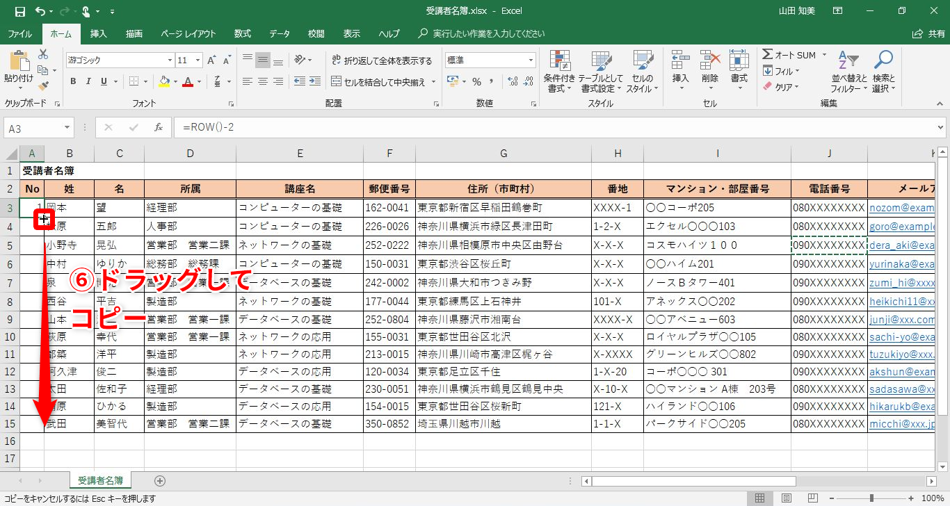 【Excel】行を削除するたびに名簿の連番を振り直すのは面倒!エクセルで行を追加・削除すると自動更新される連番を作るテク