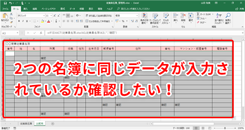 【Excel】手元のデータがすべてサーバー上の名簿と一致しているか調べたい!エクセルで2つの表データを比較するテク