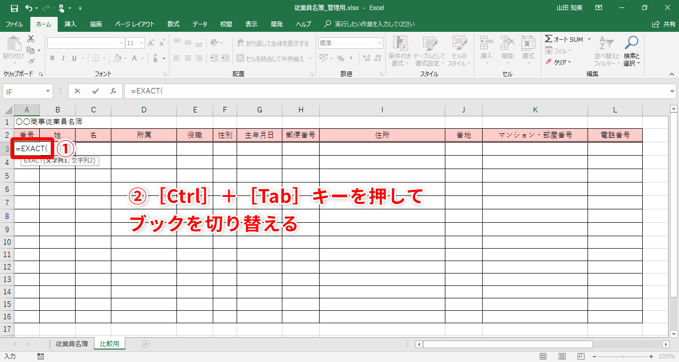 【Excel】手元のデータがすべてサーバー上の名簿と一致しているか調べたい!エクセルで2つの表データを比較するテク