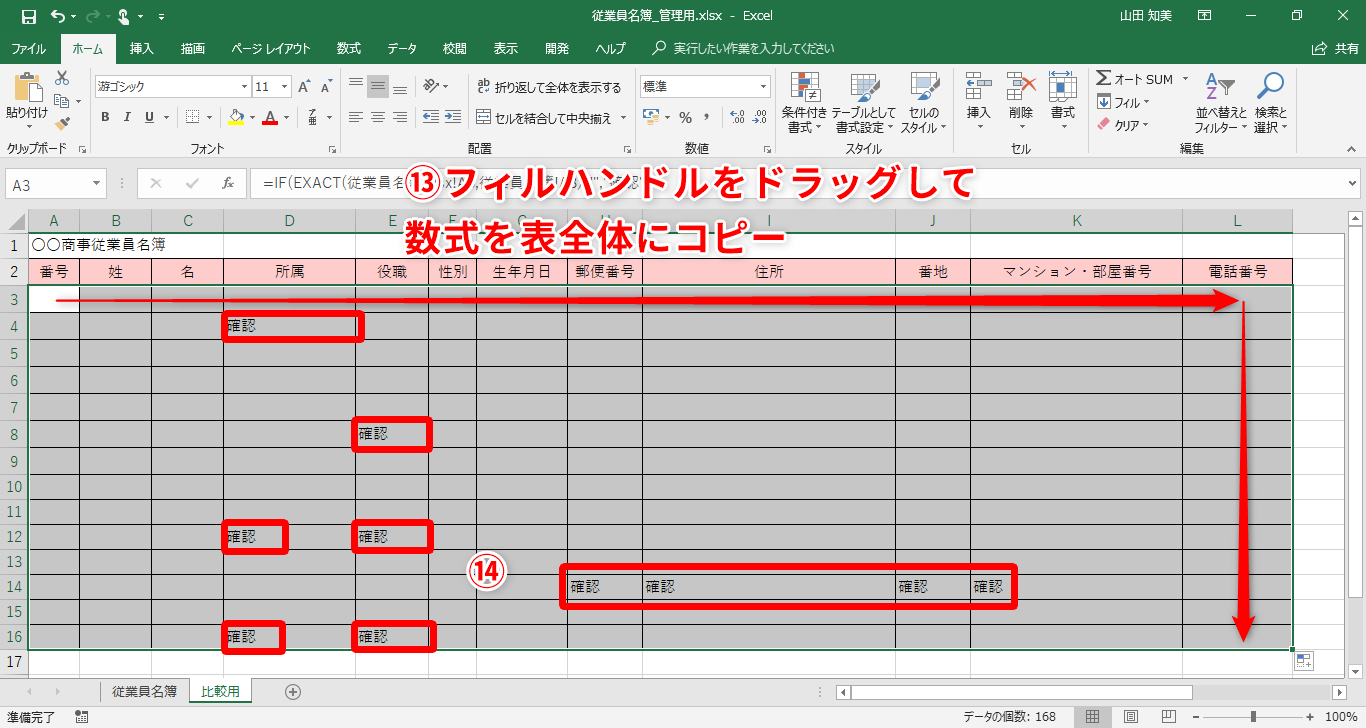【Excel】手元のデータがすべてサーバー上の名簿と一致しているか調べたい!エクセルで2つの表データを比較するテク